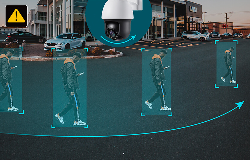 Continues following specified moving persons or vehicles with Pan Tilt cameras intelligently analyzing the image. Tracks the path efficiently when there should be little movement in the area.*
