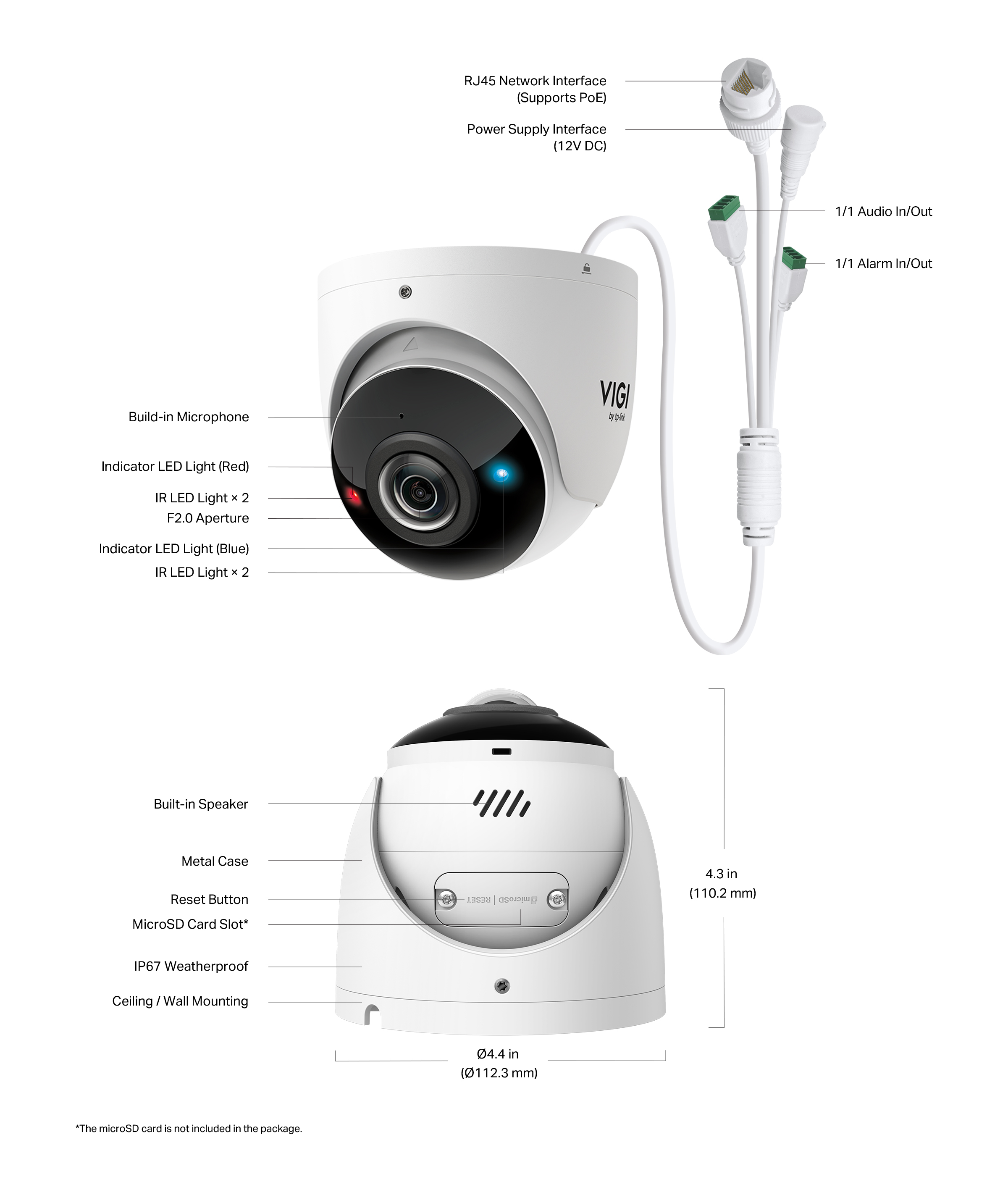 *The microSD card and pole mounting kits are not included in the package.