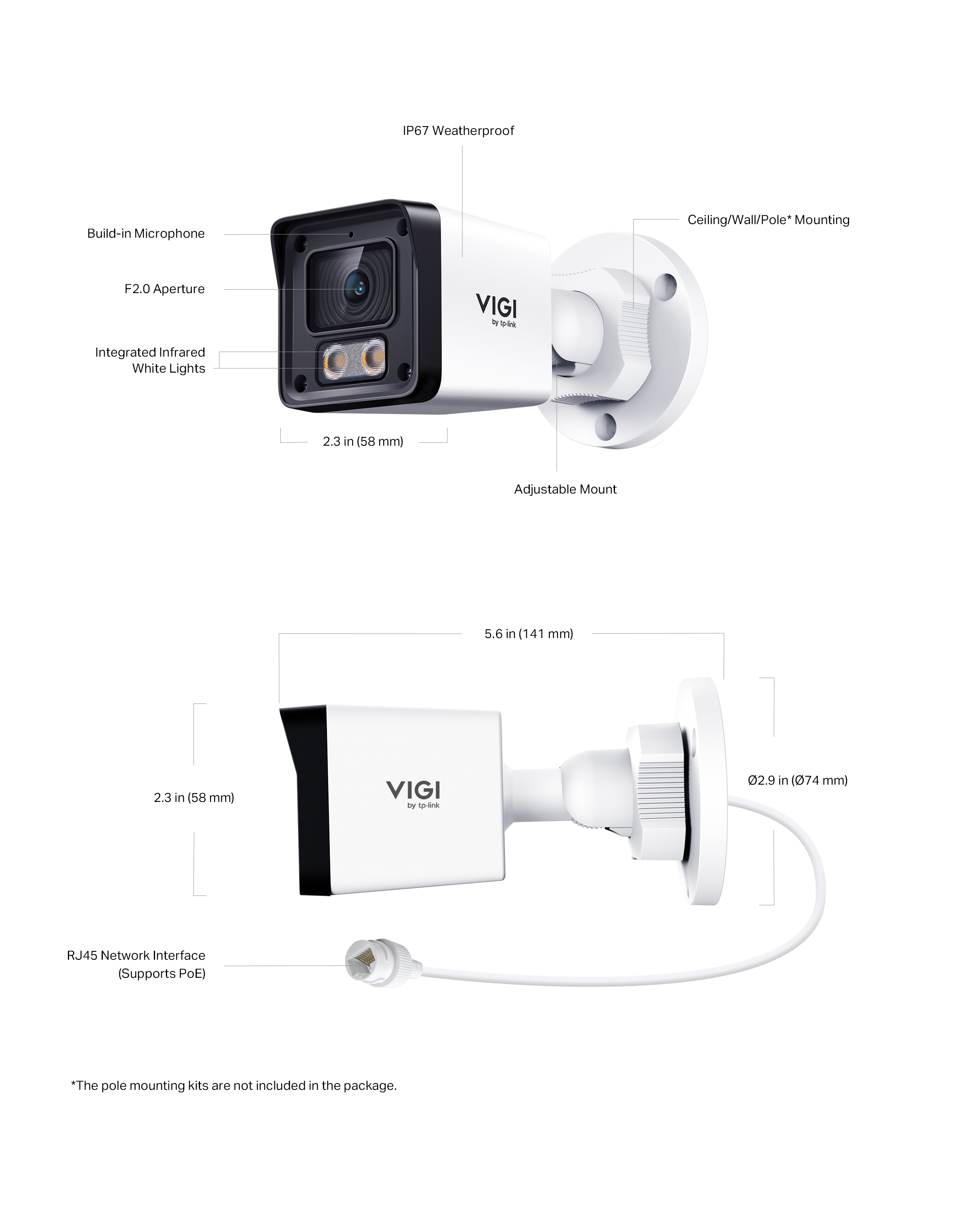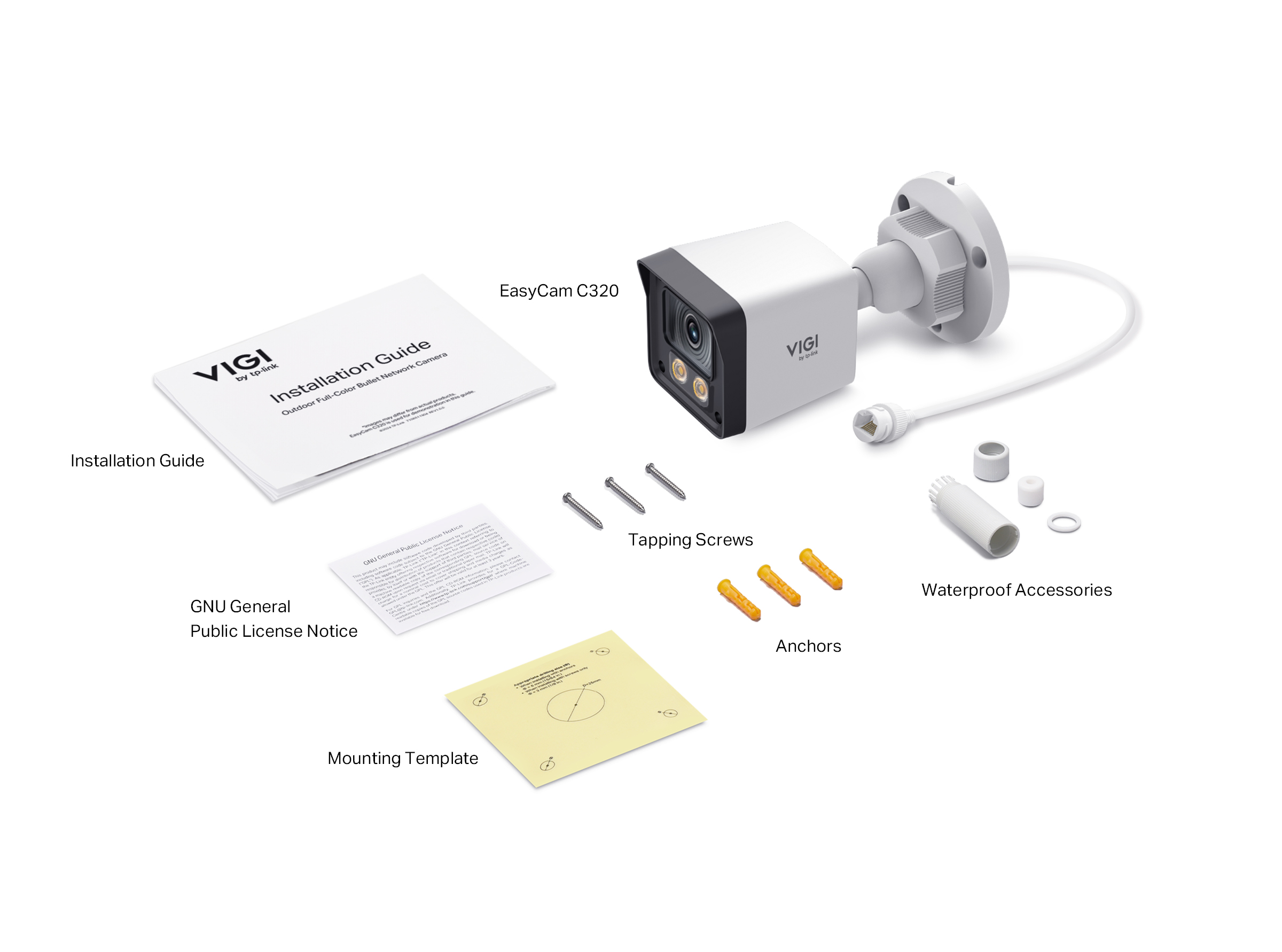 | Package Content | • VIGI Network Camera• Quick Start Guide• Waterproof Cable Attachments• Mounting Accessories |