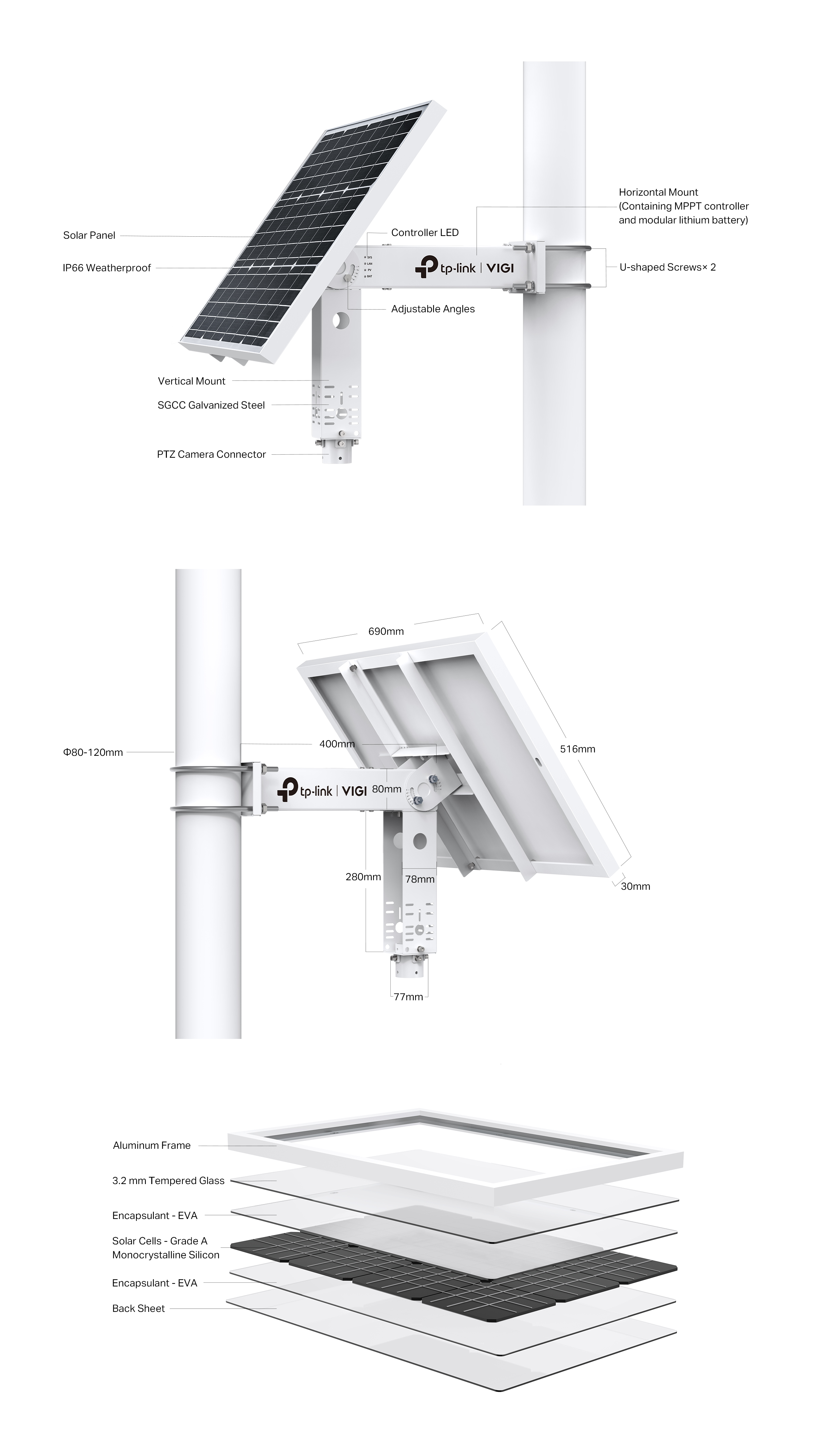 | Compatible Pole Diameter | Ø3.1-4.7 in (Ø80-120 mm) |